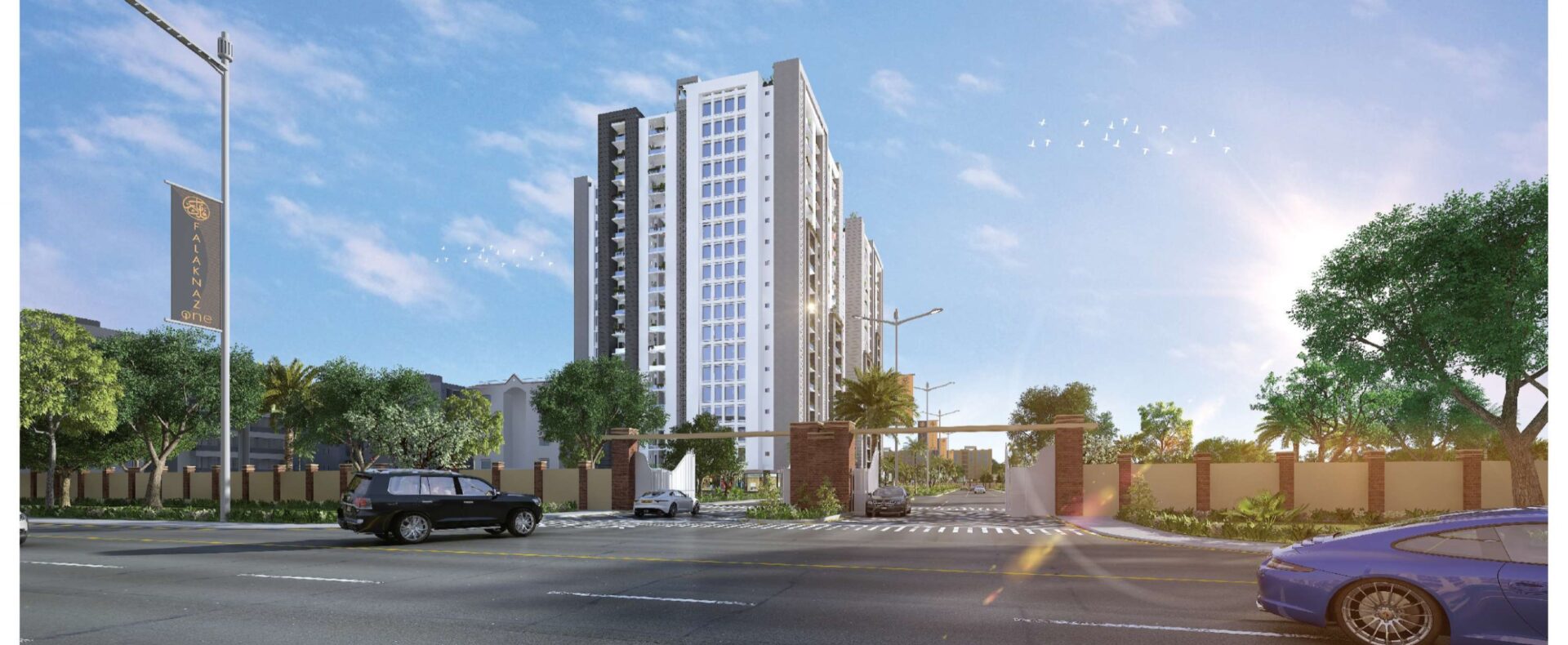 Falaknaz One is an ultra-luxury residential building by Falaknaz Group offering 3, 4 and 5-room apartments. The design blends modern architecture with elegant aesthetics—clean lines, dynamic angles, premium materials—to give a striking facade and high-end interiors. The project is located in a well-connected area, near Malir Cantonment Check Post No. 5, with easy access to University Road, Karachi Race Course, MMI Hospital, and other city-landmarks. Every amenity is designed for comfort, convenience, and prestige.